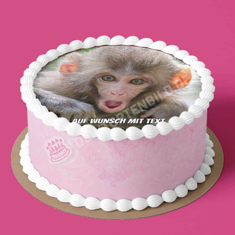 Dieser Tortenaufleger mit einem lustigen Baby Affe der  - Tortenbild - DeintortenbildBaby Affe erstaunt