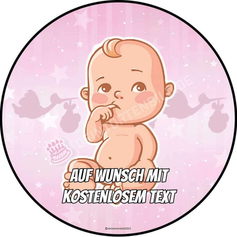 Tortenaufleger Geburtstag 'Cartoon Baby Rosa' aus hochwertigem, essbarem Oblatenpapier für Ihre Torte, Kuchen oder Cupcakes. Gestalten Sie Ihre Backkreation zu etwas ganz Besonderem mit unserem personalisierbaren Tortenaufleger!