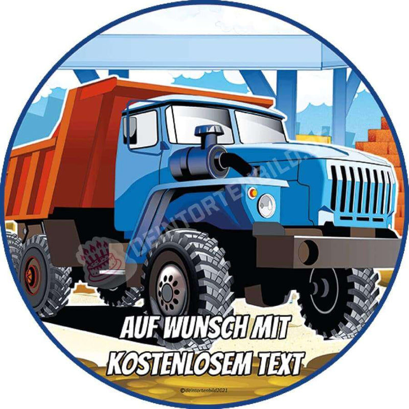 Dieser Tortenaufleger mit einem blauen Baustellen Ki - Tortenbild - DeintortenbildBaustelle Kipperfahrzeug