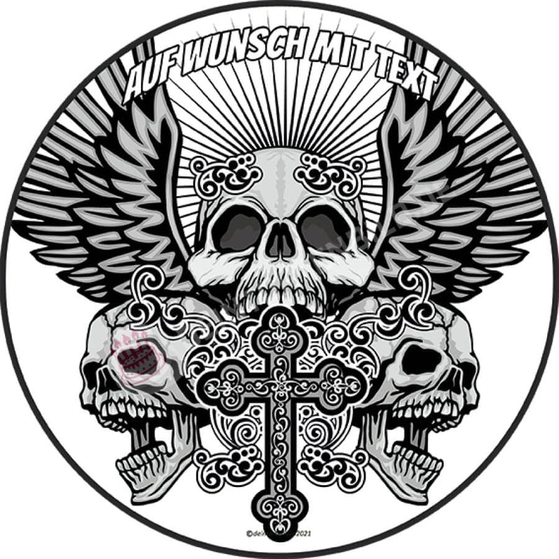 Motiv: Geflügelte Schädel mit Kreuz - Deintortenbild.de Tortenaufleger aus Esspapier: Oblatenpapier, Zuckerpapier, Fondantpapier