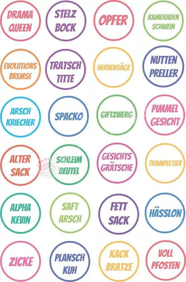 Muffinaufleger 24 lustige Sprüche in 4cm Kreis