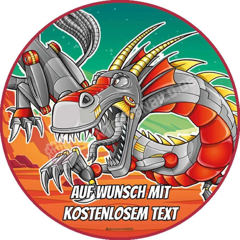 Tortenaufleger Geburtstag 'Roboter Dinosaurier mit leuchtenden Augen'