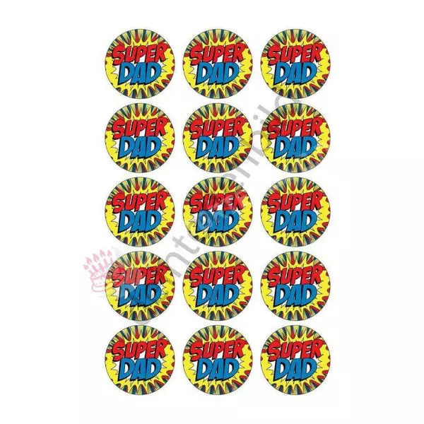 Muffinaufleger Motiv: Super Dad - Deintortenbild.de Tortenaufleger aus Esspapier: Oblate / 15x5cm, Zuckerpapier / 15x5cm, Fondantpapier / 15x5cm