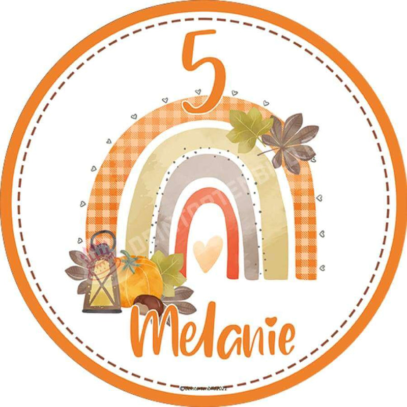 Herbstlicher Regenbogen - Name & Zahl anpassbar - Deintortenbild.de Tortenaufleger aus Esspapier: Oblatenpapier, Zuckerpapier, Fondantpapier