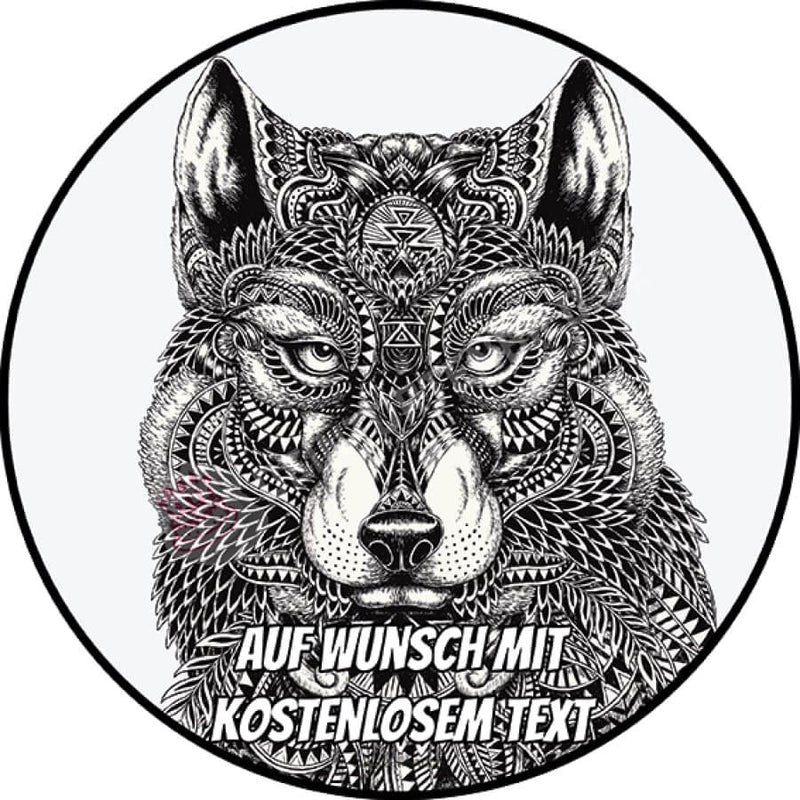 Muffin Topper Birthday 'Wolf Head with German Text'