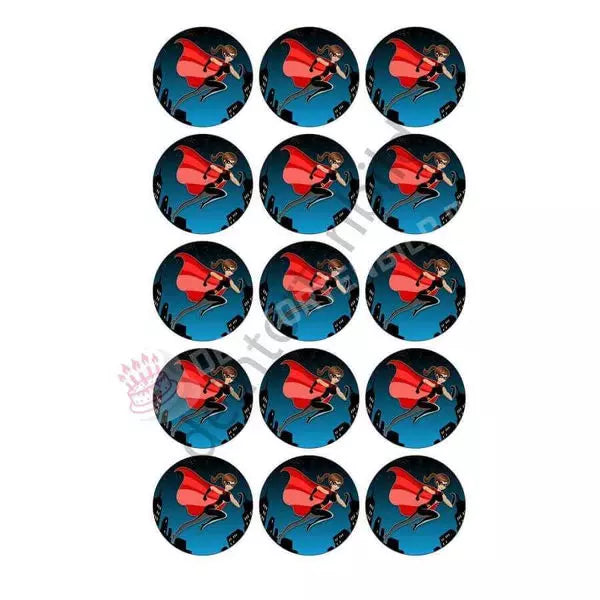Muffin topper superheroine in 5cm circle