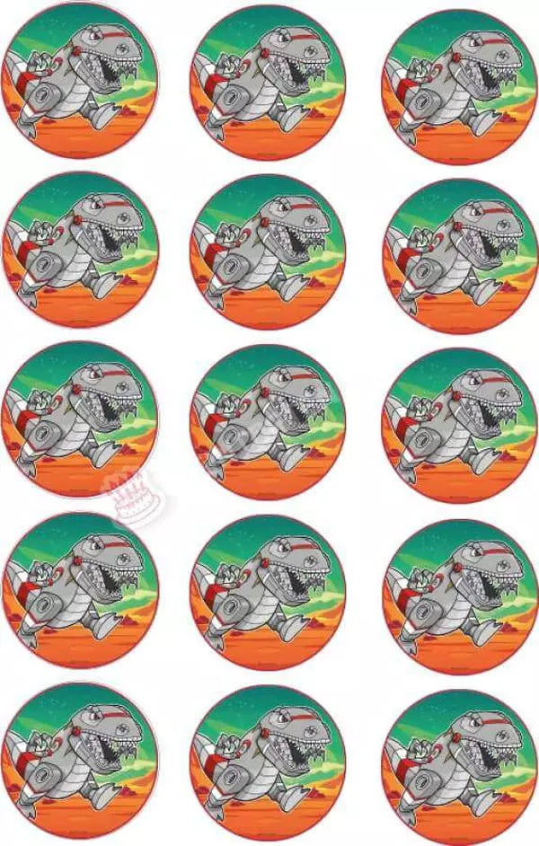 Muffin topper robot T-Rex in 4-5cm circle