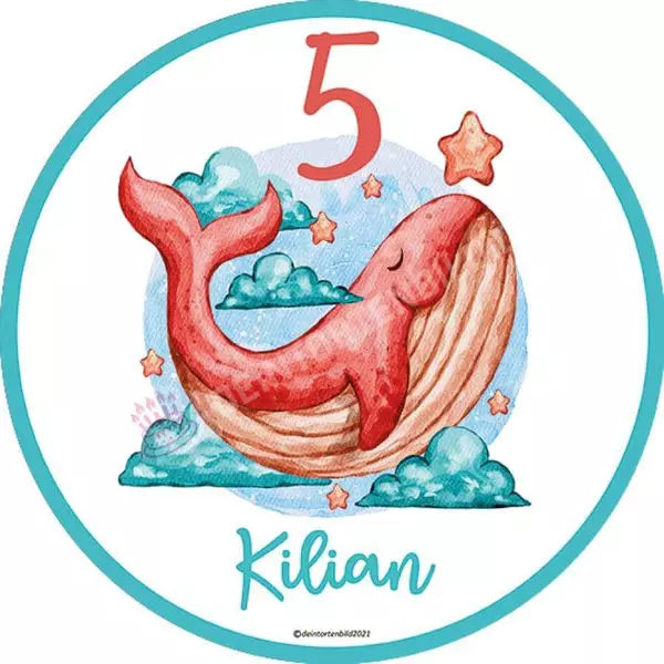Motiv: Roter Wal - Name und Zahl anpassbar - Deintortenbild.de Tortenaufleger aus Esspapier: Oblatenpapier, Zuckerpapier, Fondantpapier